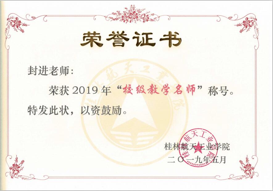 FUN乐天使官方网站教师封进荣获2019年“校级教学名师”称号