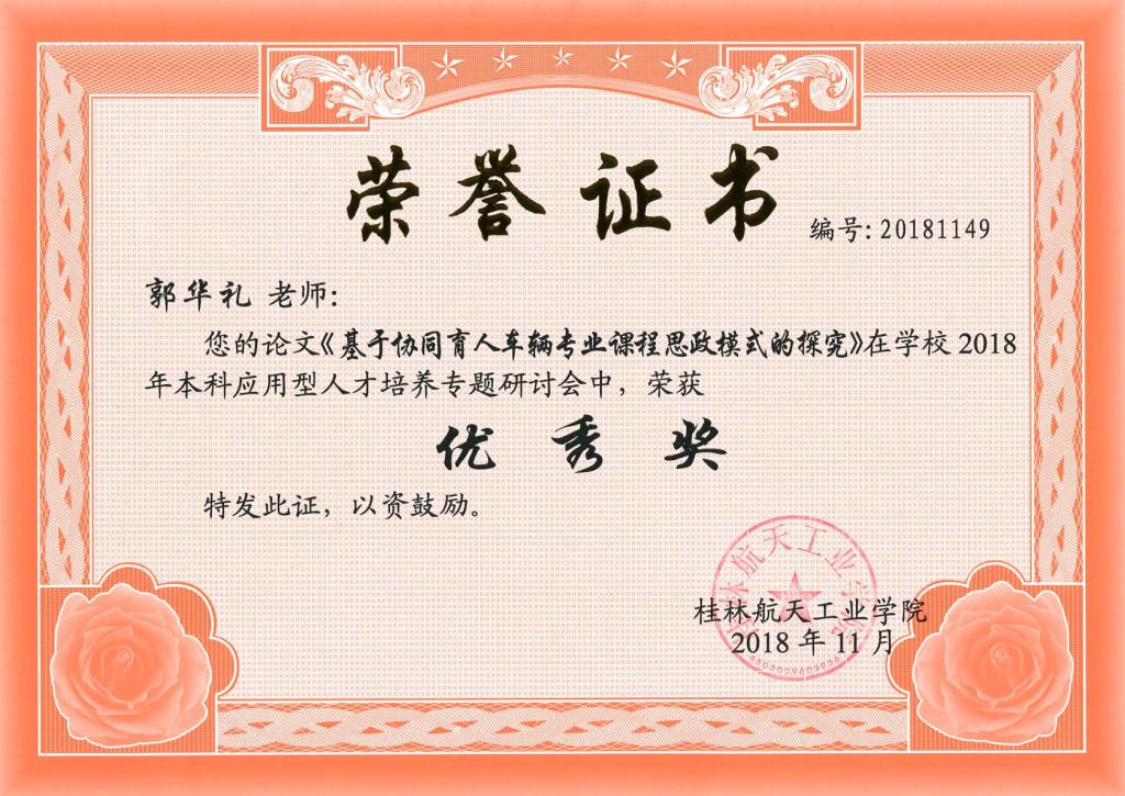 FUN乐天使官方网站郭华礼老师的论文在学校2018年本科应用型人才培养专题研讨会中荣获优秀奖