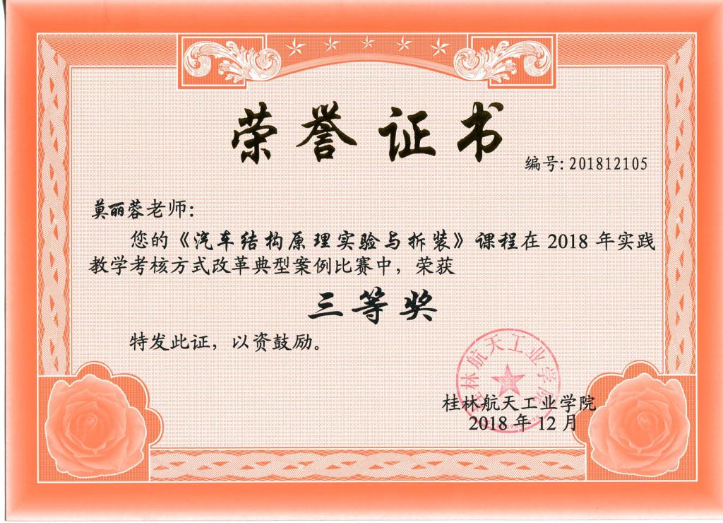 FUN乐天使官方网站教师莫丽蓉在2018年实践教学考核方式改革典型案例比赛中荣获二等奖