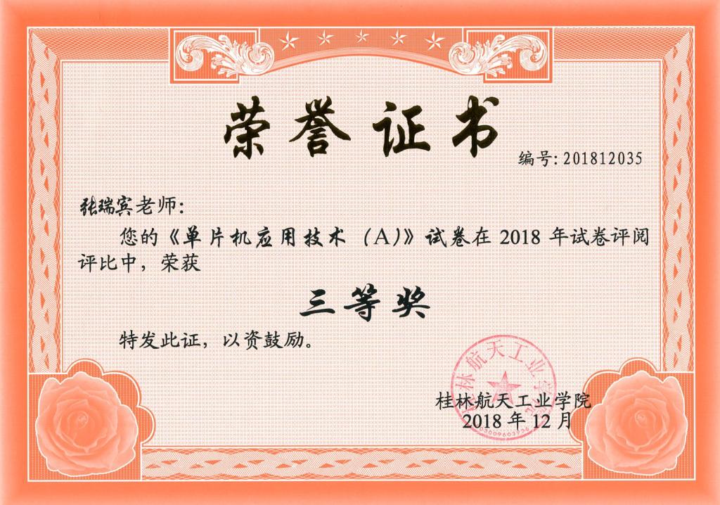 FUN乐天使官方网站教师张瑞宾在2018年试卷评阅评比中荣获三等奖