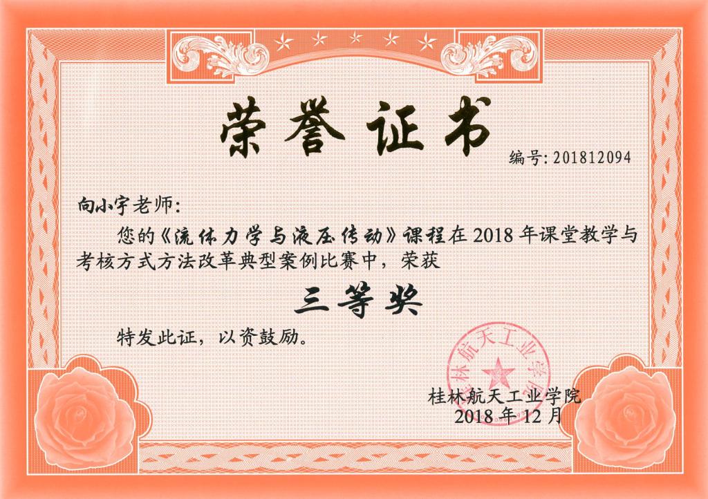 FUN乐天使官方网站教师向小宇在2018年课堂教学与考核方式方法改革典型案例比赛中荣获三等奖