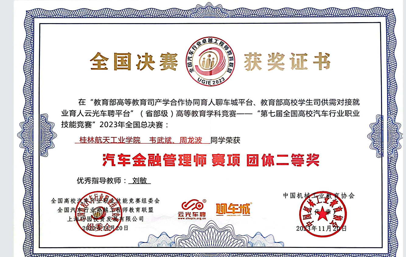 FUN乐天使官方网站教师刘敏荣获第七届全国高校汽车行业职业技能竞赛“2023年全国总决赛优秀指导教师