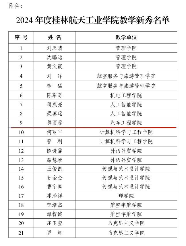 【喜报】莫丽蓉老师荣获2024年度桂林航天工业学院教学新秀