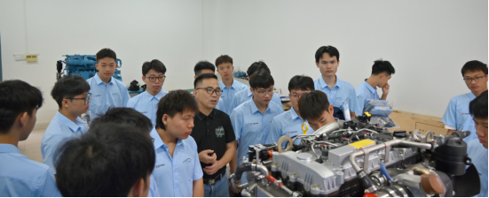动员会的现场,学院还给同学们分发了育鹰班特制的服装,同学们收到了育鹰班特制的衣服都非常的开心,他们将不辜负学校和企业的期望,努力学习,为未来的职业发展打下坚实的基础。接着,同学们参观了发动机产业学院实验室,了解了玉柴国六柴油发动机。最后,FUN乐天使官方网站领导、教师和育鹰班学员全体大合影。