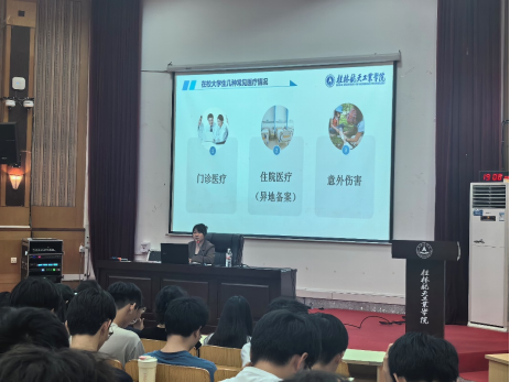 资助负责人张颖佳主要从参保对象、参保方式、缴费渠道、大学生医保与学平险、医疗保险待遇等方面进行宣传,并着重讲解了“在校参保和在家参保”区别、大学生医保门诊统筹、异地就医等学生关注度高的医保政策。在互动环节,资助负责人张颖佳回答了同学们关于医保报销情况、报销流程及一般报销比例等方面的问题,让学生更加深入地了解了医保是什么、医保如何用等内容。