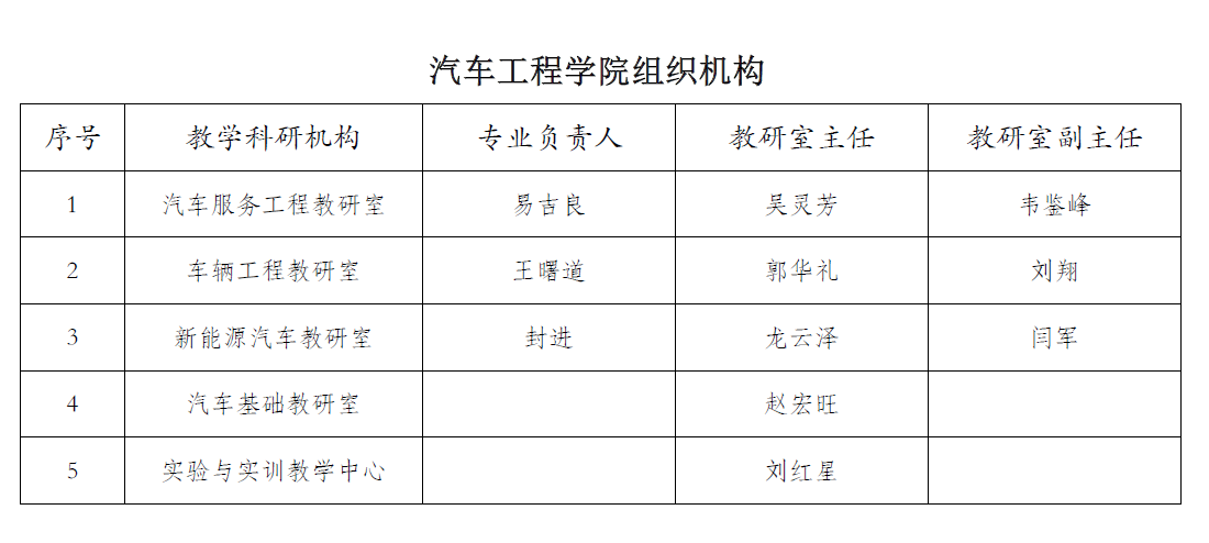 学院现有专任教师66人,实践指导教师5人。专任教师中,有教授6人、副教授22人,高级职称教师占比42.4%;具有硕士以上学位教师62人,占比94%;“双师双能型”教师26人,占比39.4%。学院从汽车整车、零部件制造企业和汽车服务企业聘请了一批具有丰富工程实践经验的高级工程师和业务主管担任专业兼职教师。